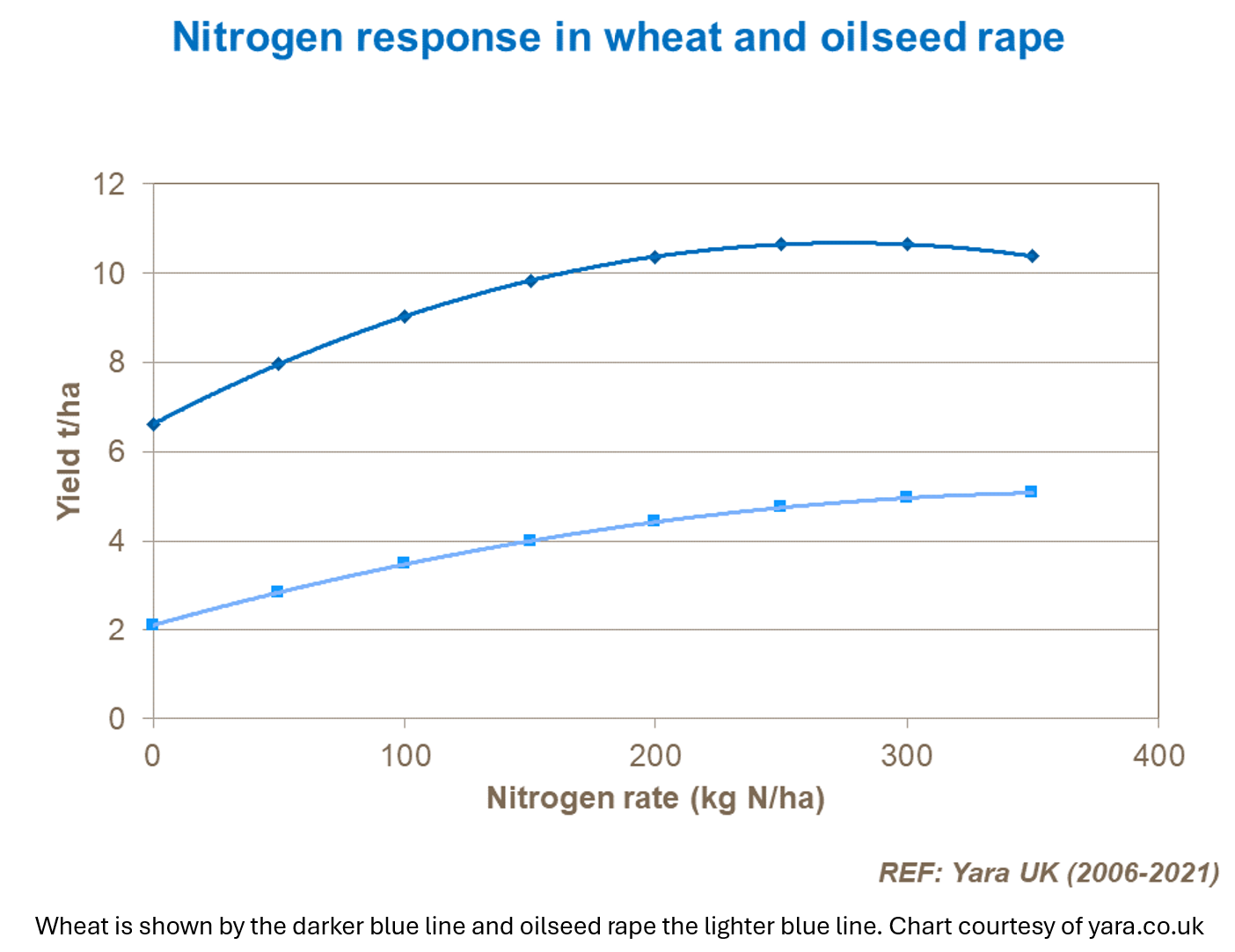 But Liebig's Law of the Minimum states that plant growth is limited by the essential nutrient in the shortest supply, not the total amount of all nutrients. So, if any other essential nutrient is in short supply, then the crop will not respond as predicted to applied nitrogen and yield will be compromised. It would be pertinent to check other major nutrients are not limiting before top dressing gets under way. If phosphate or potash are below critical levels then these require correcting too.